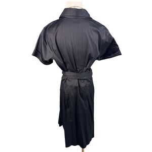 Talbots stretch sateen cotton surplice partial wrap shirt dress black size 14P