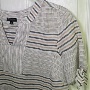 Talbots striped summer linen blouse with tie at sleeves size Sp neutral colors