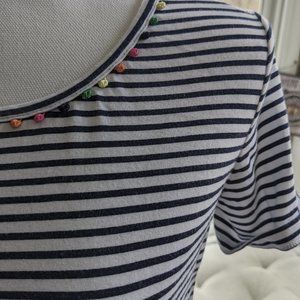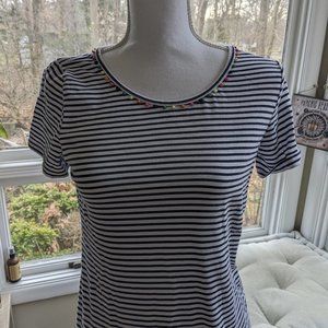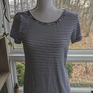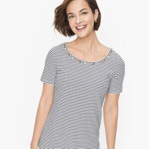 Talbots black and white striped t-shirt with cute detail around the collar. Worn small handful of times. Excellent condition. No imperfections. Size Small petite.