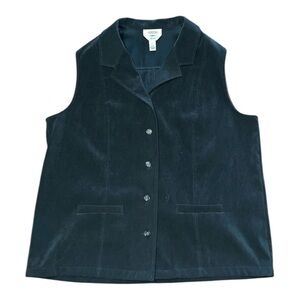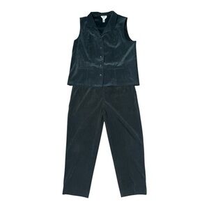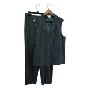 Talbots suit 2 piece green suede sleeveless vest pants size 16 large office work
