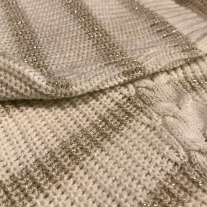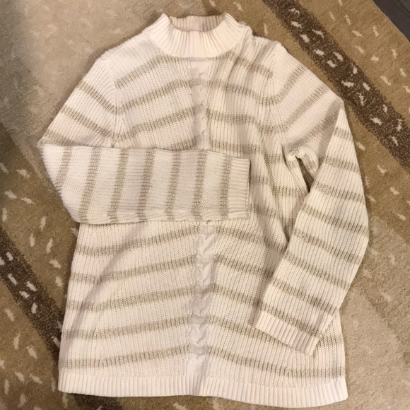 Talbots mock neck sweater. Gold and cream stripe. Cable knit stripe down the front. Size medium. Worn once.