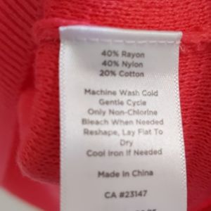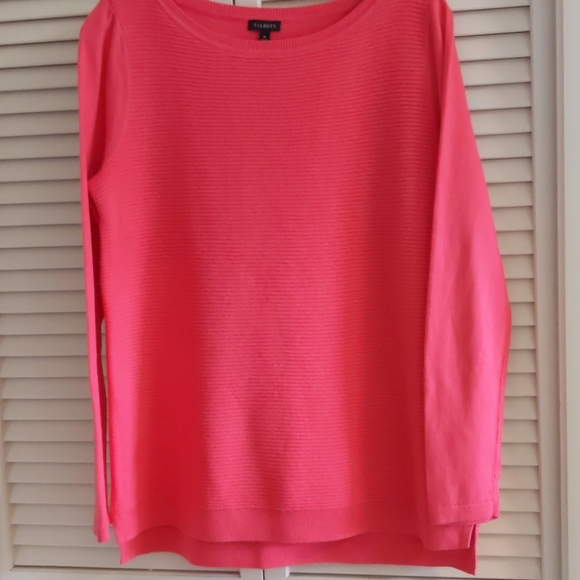 Talbot's sweater bright pink. Body is rib knit and sleeves are flat. Soft rayon nylon cotton blend. Back length 26", front 25". Front measures pit to pit 20.5