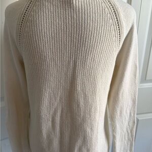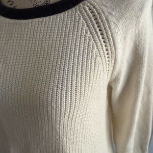 Talbots sweater worn once,’size small. Color is white with Black trim. Bottom has small side slit. Sweater is ribbed.