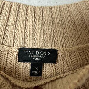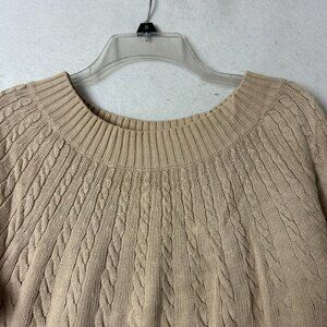 Talbots sweater sz 1X cable knit beige 3/4 sleeves fisherman cotton plus size