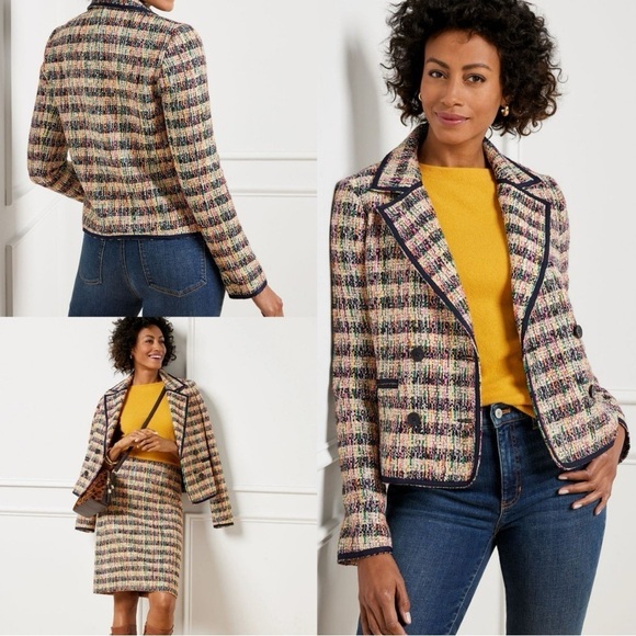 Talbots sz 16 W Café Tweed Jacket,pastel pink tweed & sharp black trim