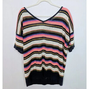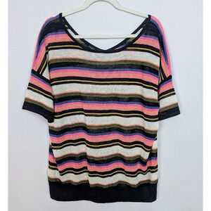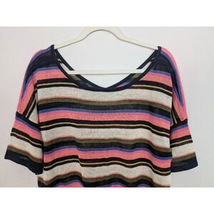 Talbots sz. 2X Top Tee Shirt 100% Linen Multicolored Stripe Relaxed Lagenlook