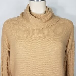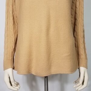 Talbots tan brown turtleneck cable knit lambswool blend sweater Large Petite