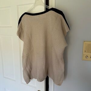 Talbot’s 100% cotton knit tunic top/sweater. Tan ribbed knit with black banding at top of shoulder and neckline. Slight shoulder drop/open sleeve. Talks below hip, very flattering. Looks great with a white blouse underneath and skinny pants! Size Small/Medium. Excellent condition from a smoke free/pet free home.