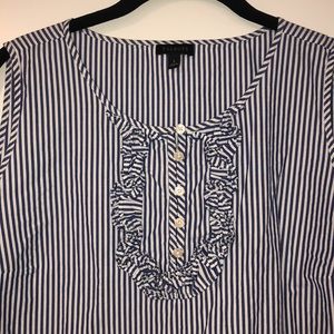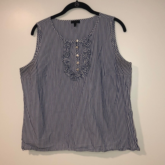 Talbots blue and white stripe tank with ruffles. Size Large.