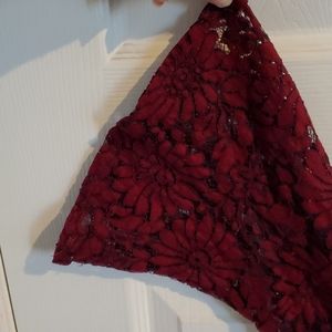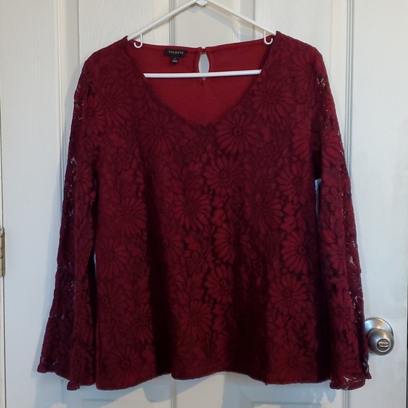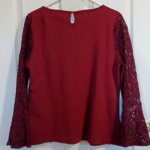 Talbot dark red blouse. Size large. Lace leaves. Bell sleeves. Used once. Like new.