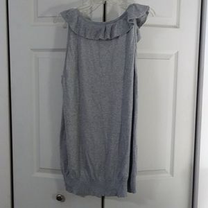 Pretty grey sleeveless Talbots long top. Ruffled neckline. Measures 22" from armpit to armpit and 32" from shoulder to hemline. Very soft.