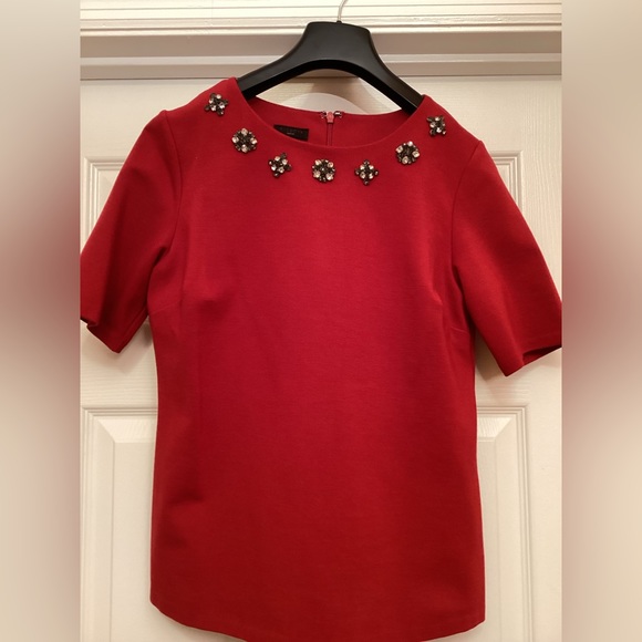 Red small petite top from Talbots. Worn once and in great condition with no flaws. 17 inches across, 23 inches in length. Great rhinestone detail at the collar.