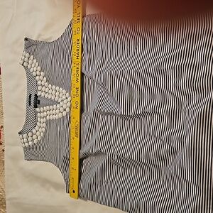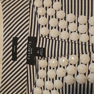 beautiful talbot top with blue and white stripes. has lively decorative white round stones around the neck and front of the shirt. I loved this top that I bought another one in pink color, which I just listed.