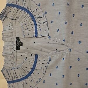 this a brand new, never worn, tag was lost in the move. 100% cotton in bluesh background with tiny stripes with darker color blue embroidery type design all over. open to offers.