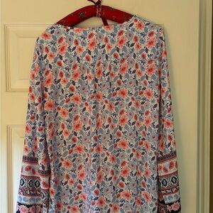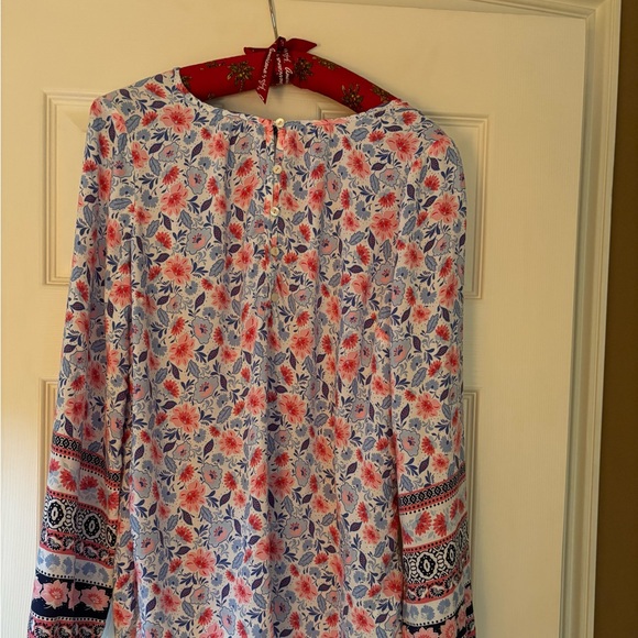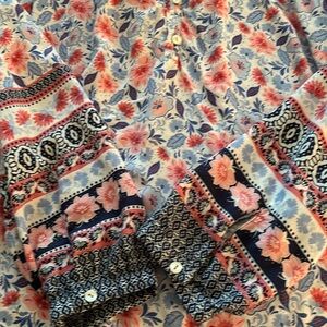 Women’s long sleeve 100% rayon top Pink and blue flower pattern