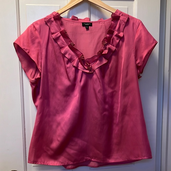 Talbots pink top. Short sleeves with a vneck. Ruffling around the vneck. Excellent condition. Silk and cotton material. Size 16.