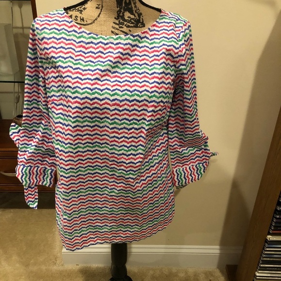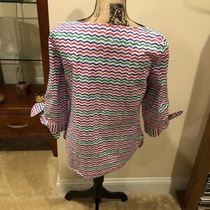 Beautiful striped top in 100% cotton In excellent condition Machine washable Has 3/4 length sleeves that tie