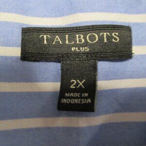 Talbots top NWOT 100% cotton blue & white stripe V neck tunic blouse size 2x