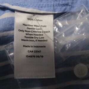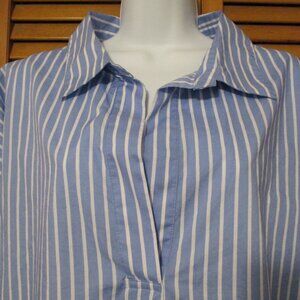 Talbots brand - New without tags, has an extra button in a bag attached to the material tag. Button sleeves, light weight, soft, flowy, 100% cotton tunic top that is sky blue and white with vertical stripes Flattering neckline.