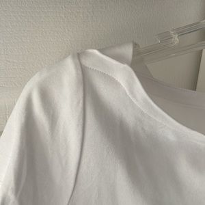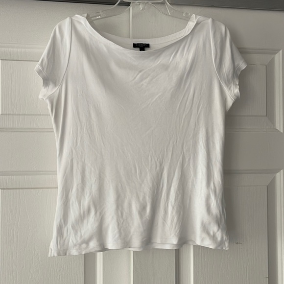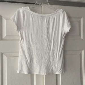 Short sleeve Talbots white top with slight boatneck and side vents.