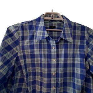 TALBOTS TOP WOMENS SIZE 1X BLUE PLAID BUTTON UP COTTON
