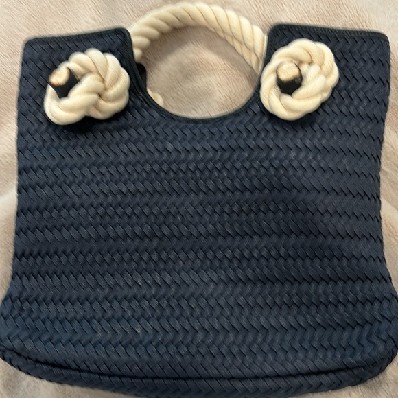 Talbots Tote with beautiful nautical rope knots handle 12 x 13