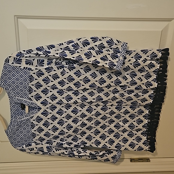 Talbots tunic style top with 3/4 sleeve. brand new, tag was lost in multiple moves. has a very decorative fringe at the bottom. let me know if you have any offers or questions.