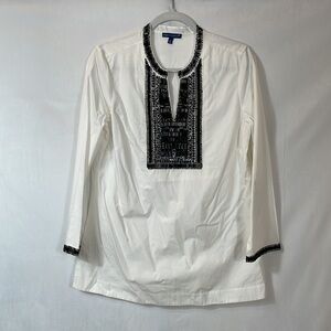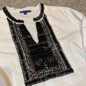 Ramp by Talbots white cotton tunic w black beading. Dressy. Size M side zipper. NWOT extra beads still attached to fabric label.