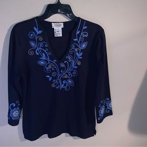 Talbots tunic with embroidery navy blue light blue Size Small excellent pre used