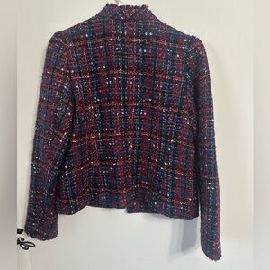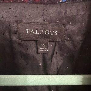 Talbots tweed red blue blazer with metallic detail gold buttons sz 10 gorgeous!