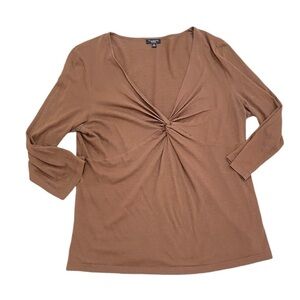 Talbots v neck front knot caramel brown lightweight top 3/4 sleeve size medium