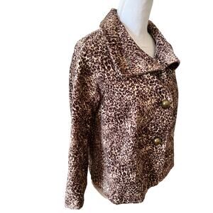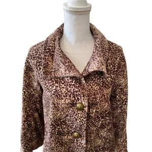 Fabulous leopard print velvet jacket from Talbots. Size 2P. Fully lined, 100% cotton, large brass buttons. Bracelet length sleeves