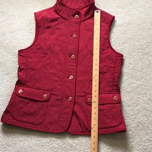 Gorgeous red vest. Quilted design but not puffy. Button closures on front and pockets. Fleece lining