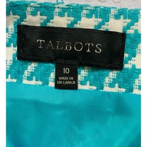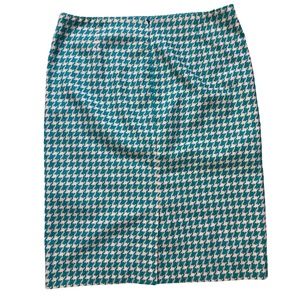 Talbots aqua and white houndstooth, lined, pencil skirt