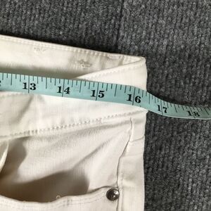 White jean like design, material blend of cotton, rayon, polyester and spandex