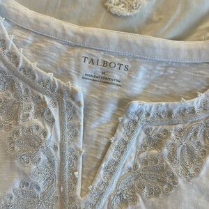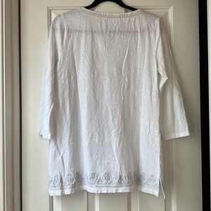 Talbots white embroidered beaded 3/4 sleeve tunic 100% cotton medium