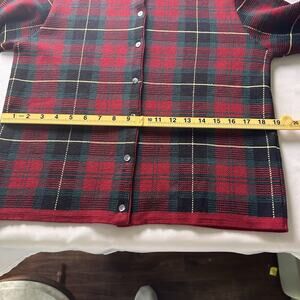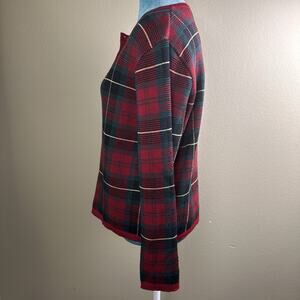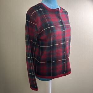 Talbots women S Cardigan Merino Wool Button Red Christmas Plaid made in Italy