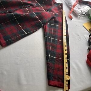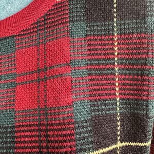 Talbot's Classy Women's S Made in Italy Merino New wool Christmas sweater in red, green plaid - sooooo soft ! Classy and in flawless excellent condition ! My FLAT measurements include ; chest between axilla 19.5", waist 19", sleeve 21.5" from shoulder seam to the end of the cuff, the length is 22" from the bottom of collar to the end of hem. Thank you for your consideration of this plaid Soft gorgeous merino wool cardigan by Talbot's .