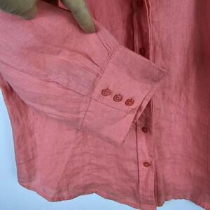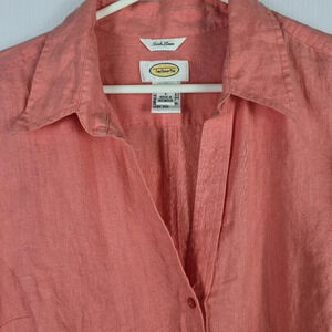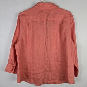 Talbots women's 100% linen coral 3/4 sleeve full button-up blouse size L