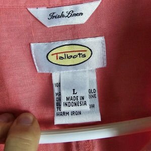 Talbots women's 100% linen coral 3/4 sleeve full button-up blouse size L. Excellent used condition. No rips, tears, or stains.