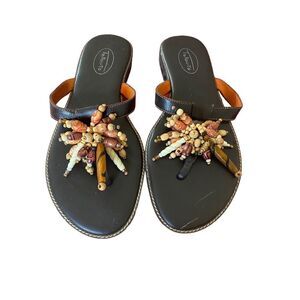 Talbots women’s Beaded tassel brown flip-flops/sandals, 6.5.