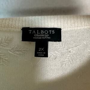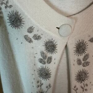 Talbots women’s cardigan 1 button Lambswool cream silver beads plus size