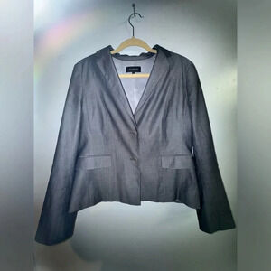Talbots women’s cotton Blend blue grey 2 button Blazer size 14 jacket suit