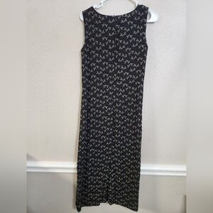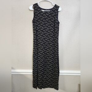 Talbots petites womens casual floral embroidered sleeveless black & tan lined long maxi teacher dress size 6 with back zipper enclosure