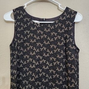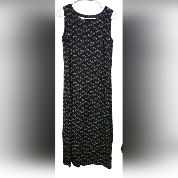 Talbots petites womens casual floral embroidered sleeveless black & tan lined long maxi teacher dress size 6 with back zipper enclosure