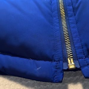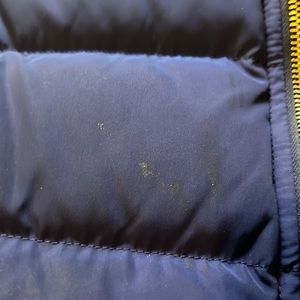 Small spot on right front and bottom right of zipper. Will most likely come out when washed. See last 2 photos.