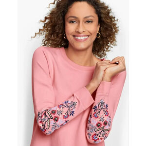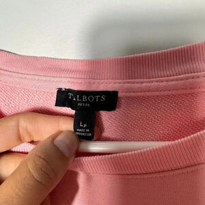 Talbots women’s pink embroidered crewneck long sleeve sweatshirt sz petite Large
