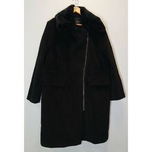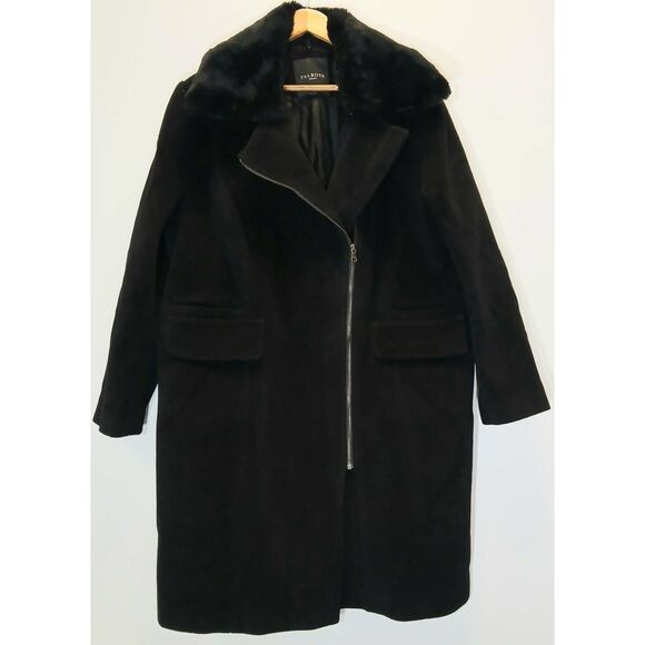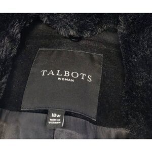 Talbots womens size 18w long wool coat black fur collar wimter jacket