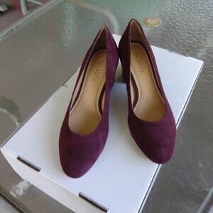 Talbots women's size 9&1/2M, Burgundy suede leather chunky heel shoes, round toe