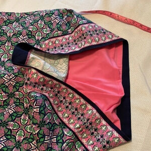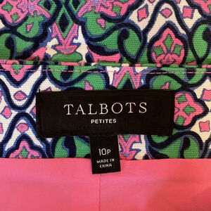 Talbots womens skirt 10 MP petite stretch knee pattern blue pink business casual